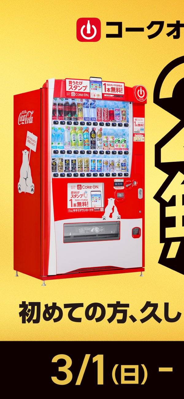 コカ・コーラの自販機でドリンクを購入することで、スタンプをためられます。15個たまると、お好きな製品と交換できる無料のドリンクチケットがもらえますよ。
