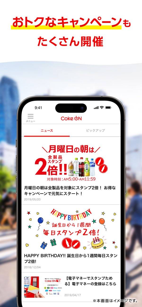 - 対応自販機でドリンクを買うとスタンプが集められるアプリ