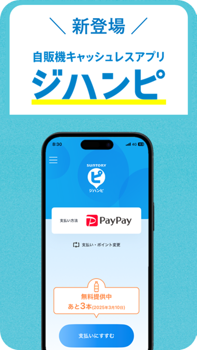 サントリー自販機にスマホをタッチするだけで商品を購入可能。釣り銭切れで買えない、財布を忘れてしまってもスマホさえあれば自販機を利用できます。SMS認証と支払い方法の連携だけで利用でき、多彩な電子マネーやポイントプログラムに対応。新規ユーザーには、飲み物3本が無料になる特典も用意されています。