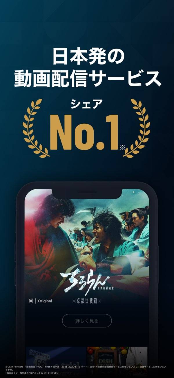 動画配信サービス業界No.1の動画本数を誇るエンタメアプリです。サブスクに登録すれば、30万本の見放題動画に加え、200誌以上の雑誌が読み放題。それ以外にも、毎月1,200円分のポイントがもらえて、新作映画や漫画、小説など多くのコンテンツに利用できますよ。
