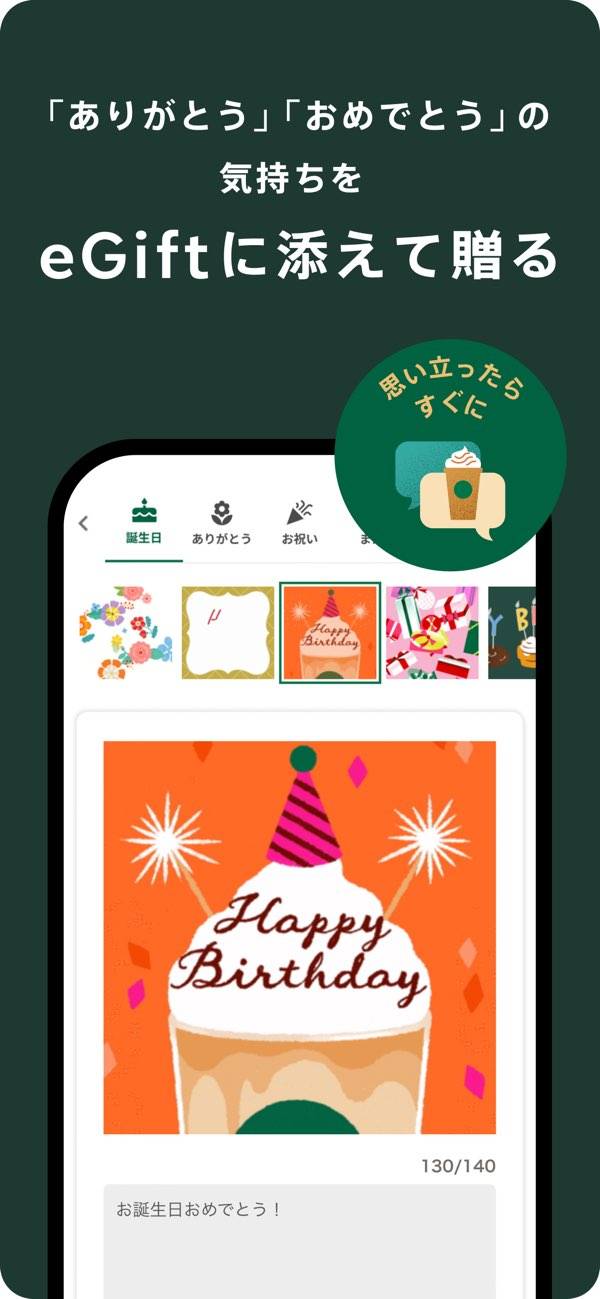 - スタバ好きな友達にギフトを送れる。金額を自由に設定
