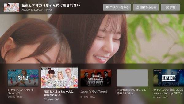 - 番組の途中には動画広告が入る