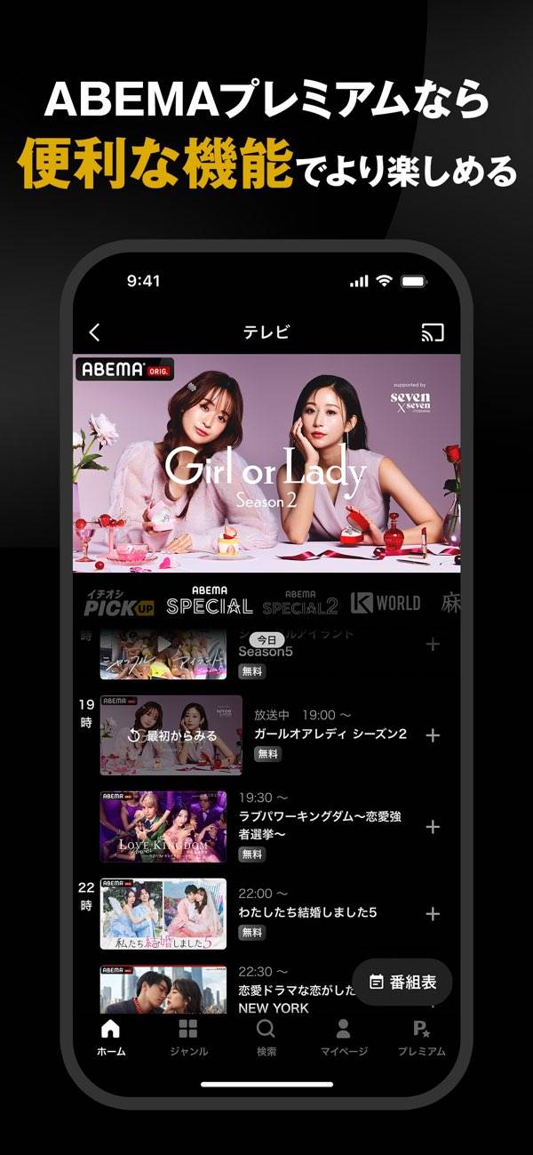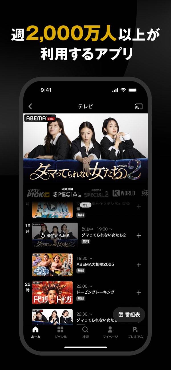 - 放送から1週間を過ぎた番組は、プレミアム会員しか見られない