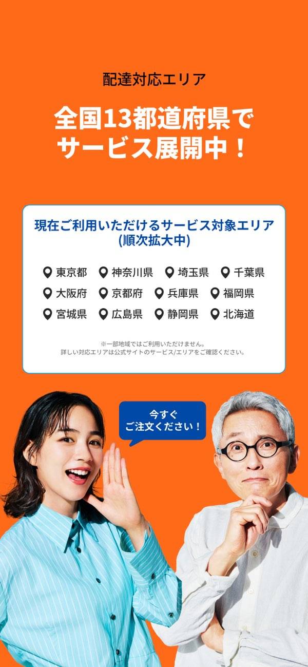 - 2025年10月末現在、対応エリアが関東、関西のみ
