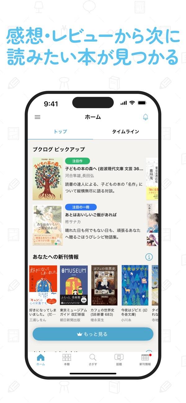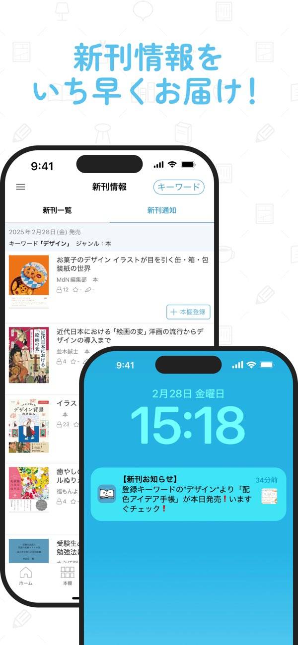 本屋大賞などの話題作を探せるタブ検索機能も便利です。キーワードを登録すると、新刊が出たときにプッシュ通知で知らせてくれるので、買い忘れを防げます。
