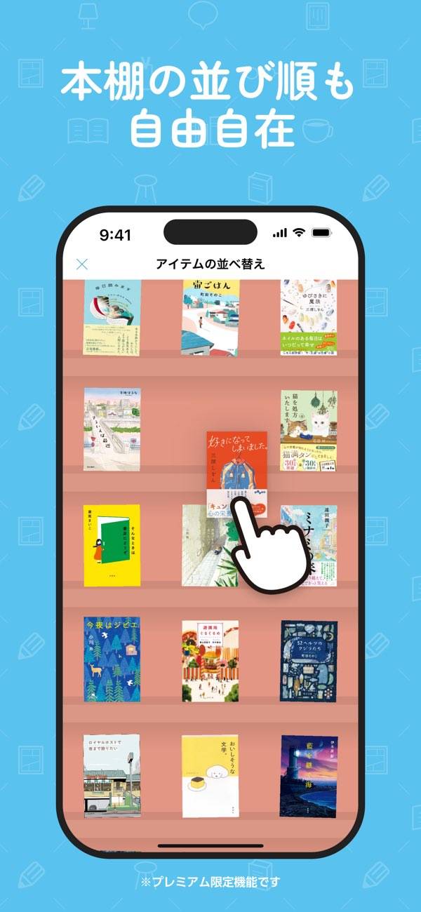 アプリで登録した本は、本棚に一覧表示されます。「いま読んでいる」「読み終わった」など、項目ごとにわかりやすく整理できるのが特徴。登録日や発売日で並べ替えたり、ジャンルやタグで絞り込み表示したりと、使いやすい操作性が魅力です。
