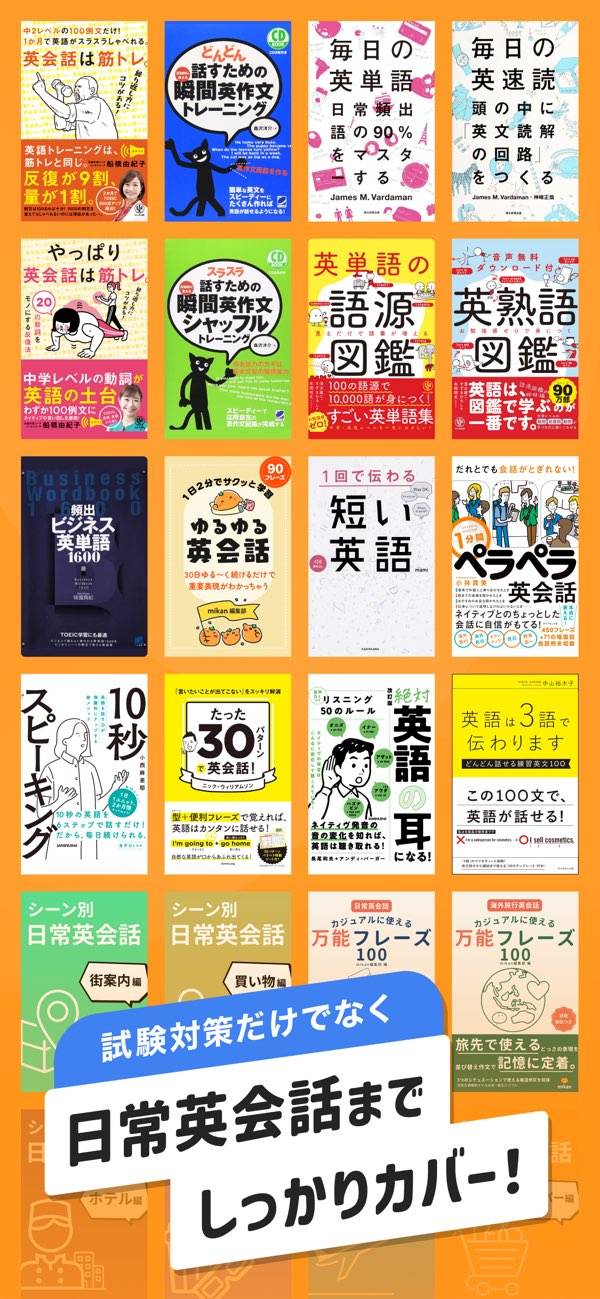 約10万語を収録した英語学習アプリ。リーディングやリスニングも同時に学習可能です。本アプリは教材のラインナップも充実しており、大学受験なら英単語ターゲットシリーズ、英検であれば出る順パス単シリーズなどを収録。