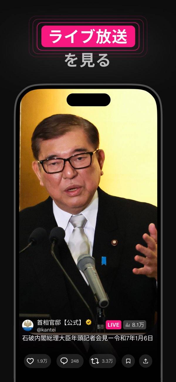 世界中のつぶやきが集まるSNS『X(旧:Twitter)』の公式アプリです。通勤中や空き時間にタイムラインをのぞくだけで、国内外の話題を手軽にキャッチ。動画や音声コンテンツ、コミュニティ参加など、気になるジャンルに合わせて自由に情報収集ができます。