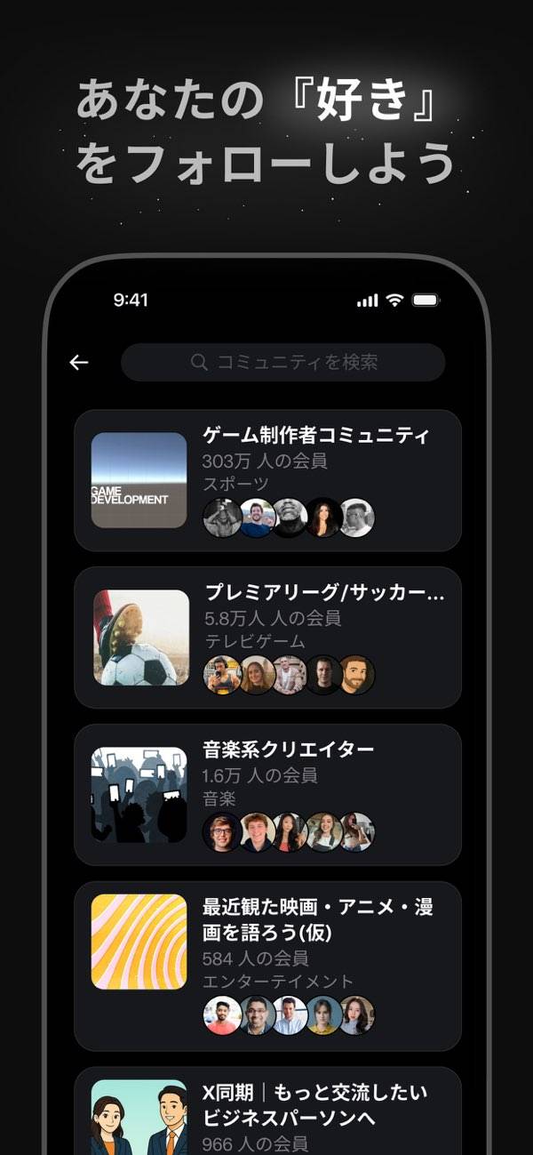 気になる話題ごとに作られたコミュニティ機能では、スポーツや音楽、テクノロジーなど幅広いジャンルに関する投稿を集めて読めます。自分で新しいコミュニティを立ち上げることも可能で、共通の興味を持ったメンバーとのやりとりを気軽に楽しめます。ゆるく交流したいときにも、専門的な話題を深めたいときにもぴったりです。