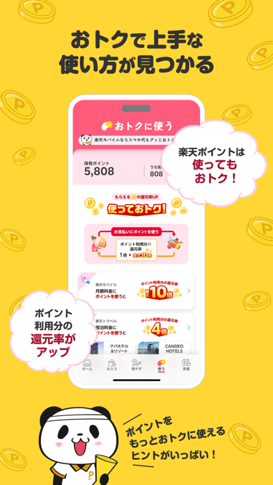 楽天ポイントを貯める、使うに特化した便利なアプリ。ラッキーくじやミッションで毎日楽天ポイントを獲得できるチャンスが用意されており、コツコツ続けるとわずかな空き時間でもポイントを積み上げられます。ポイントの獲得・消費の実績や、有効期限があるポイントもひと目で確認でき、買い物しながら無駄なく使い切れますよ。