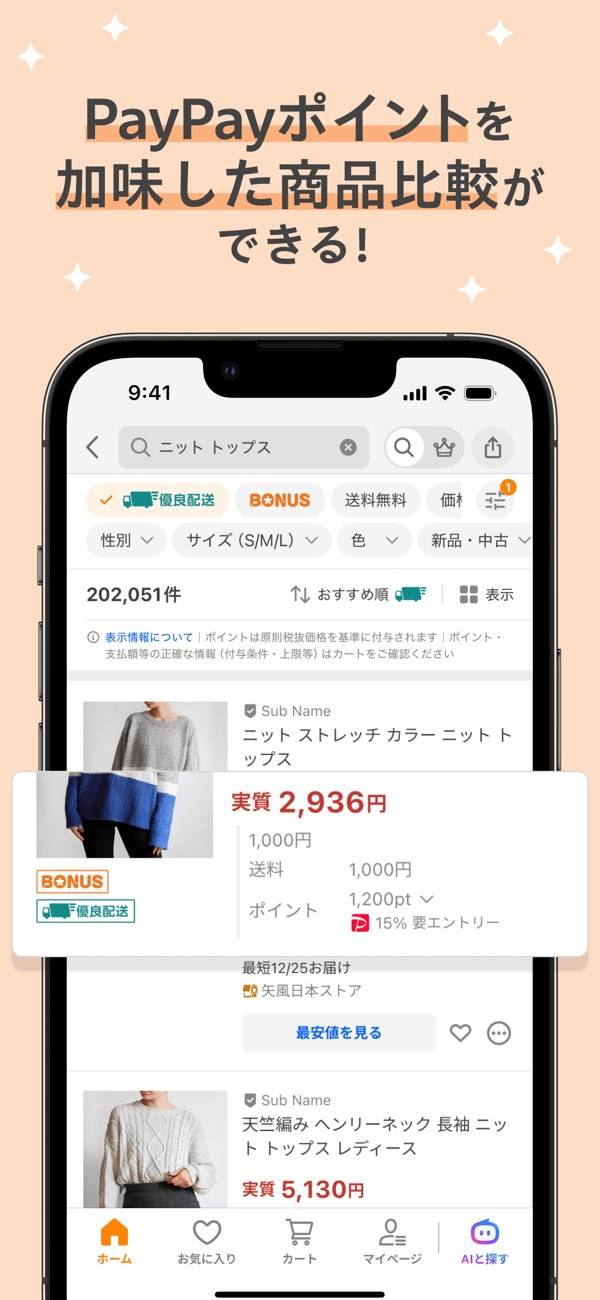 毎日の買い物からふるさと納税までまとめてできるYahoo!のショッピングアプリ。カテゴリも商品数もとにかく豊富で、欲しいものをすぐ見つけられます。PayPay連携や毎日もらえるクーポンなど、おトクに買い物できる仕組みもいっぱいです。