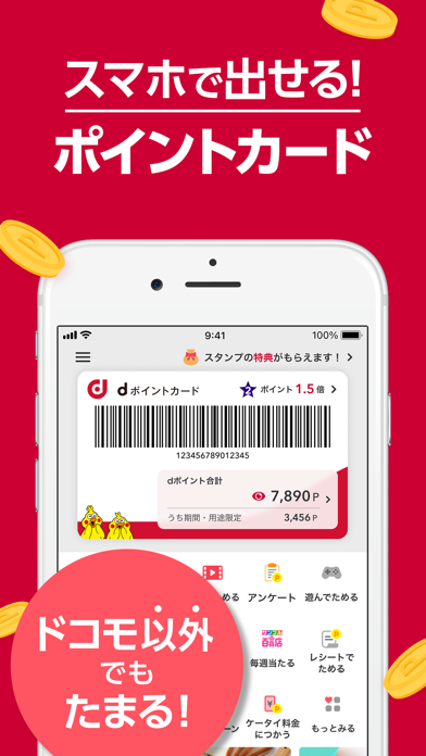 スマホでdポイントカードを表示でき、店頭でポイントを貯められます。また動画の視聴やクジでポイントを貯められる機能も。少しずつですが、毎日コツコツ続ければ、まとまったポイントになるでしょう。