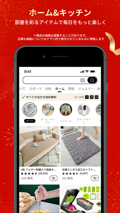 『Temu』は通販サイトアプリであり、有料で使えるプレミアム会員のシステムはありません。カテゴリ検索やセール情報のチェックは完全無料で使えます。